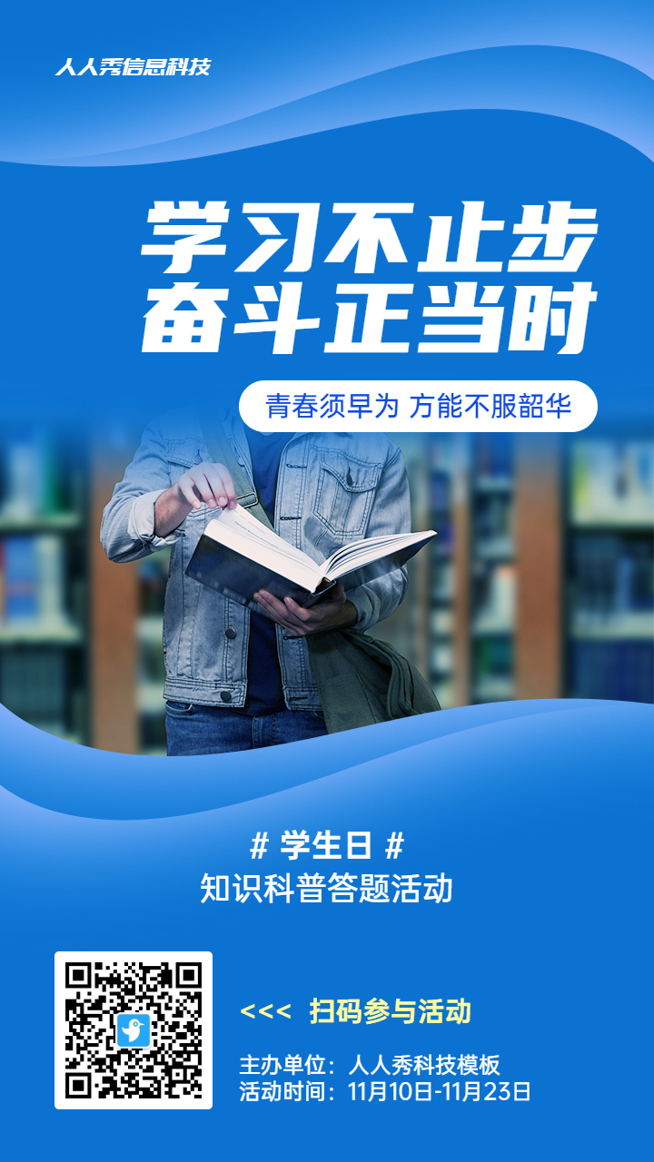 首页 / 模板商店 / 蓝色写实风格政府学生日知识答题活动banner