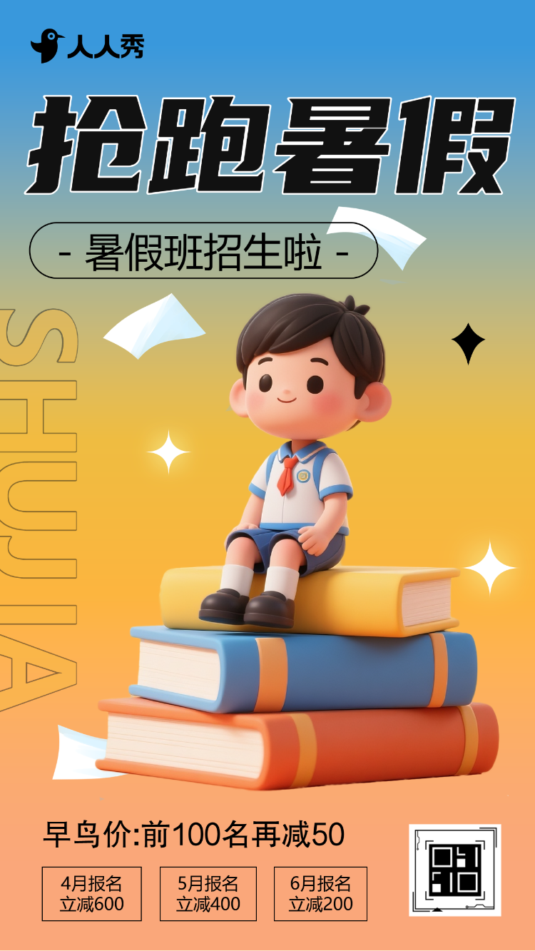 首页 / 模板商店 / 暑假班招生兴趣班托管班幼小衔接班招生促销