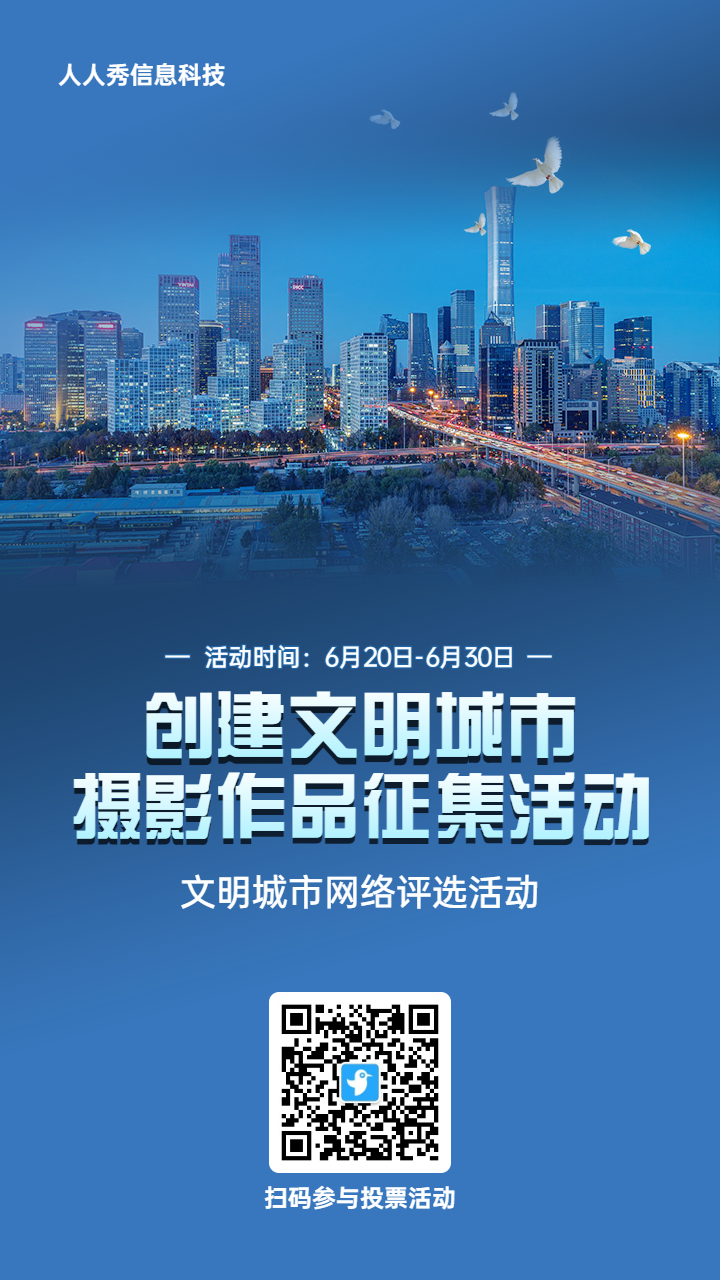首页 / 模板商店 / 蓝色写实风格政府组织文明城市投票活动banner