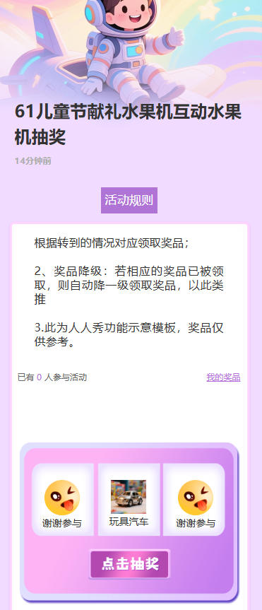 首页 / 模板商店 / 61儿童节献礼水果机互动水果机抽奖