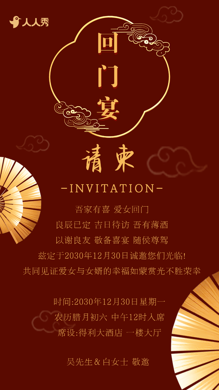 爱女回门宴请贴结婚邀请函回门邀请函