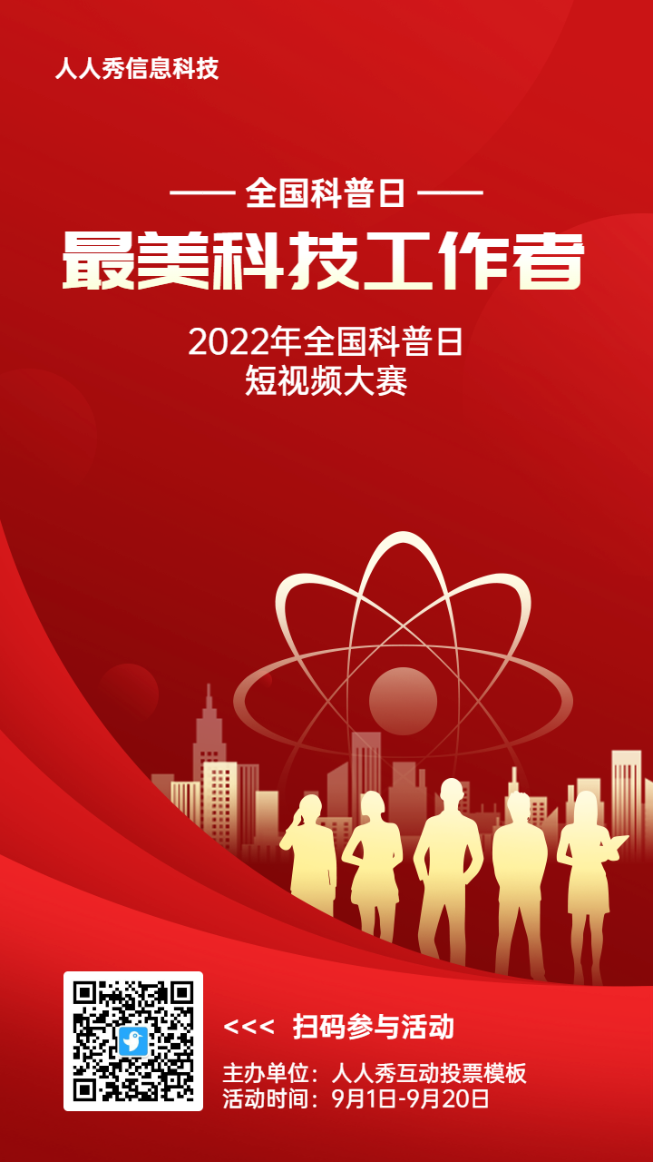 首页 / 模板商店 / 红色扁平渐变风格政府组织全国科普日投票活动banner