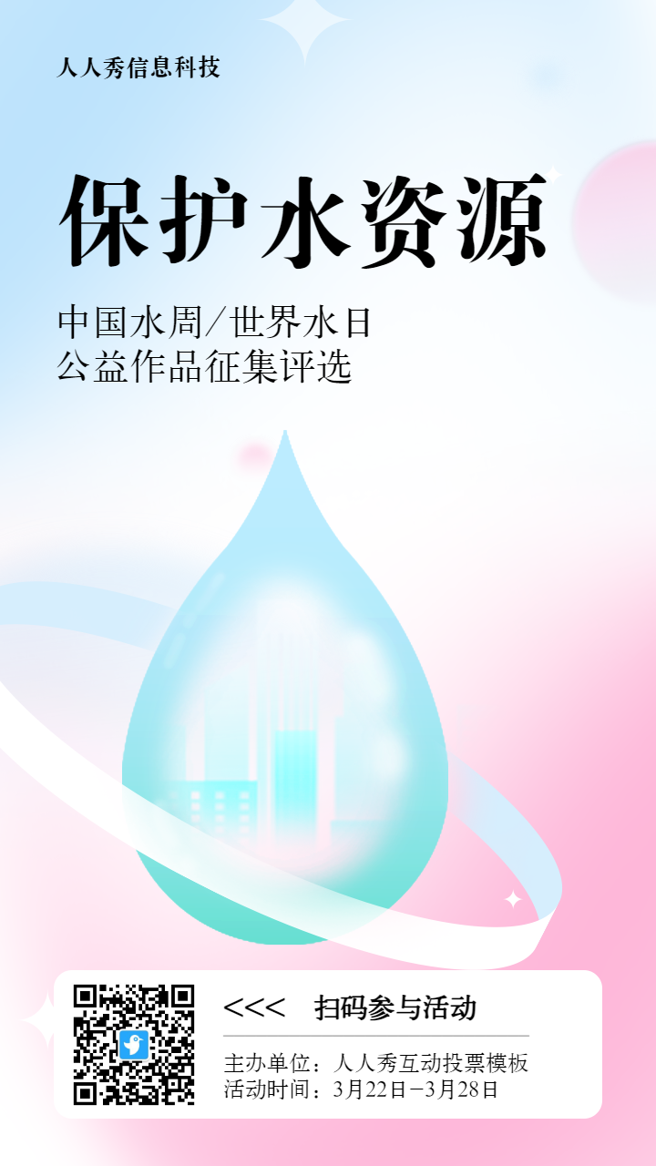 首页 / 模板商店 / 蓝色扁平渐变风格政府组织中国水周/世界水日投票活动banner