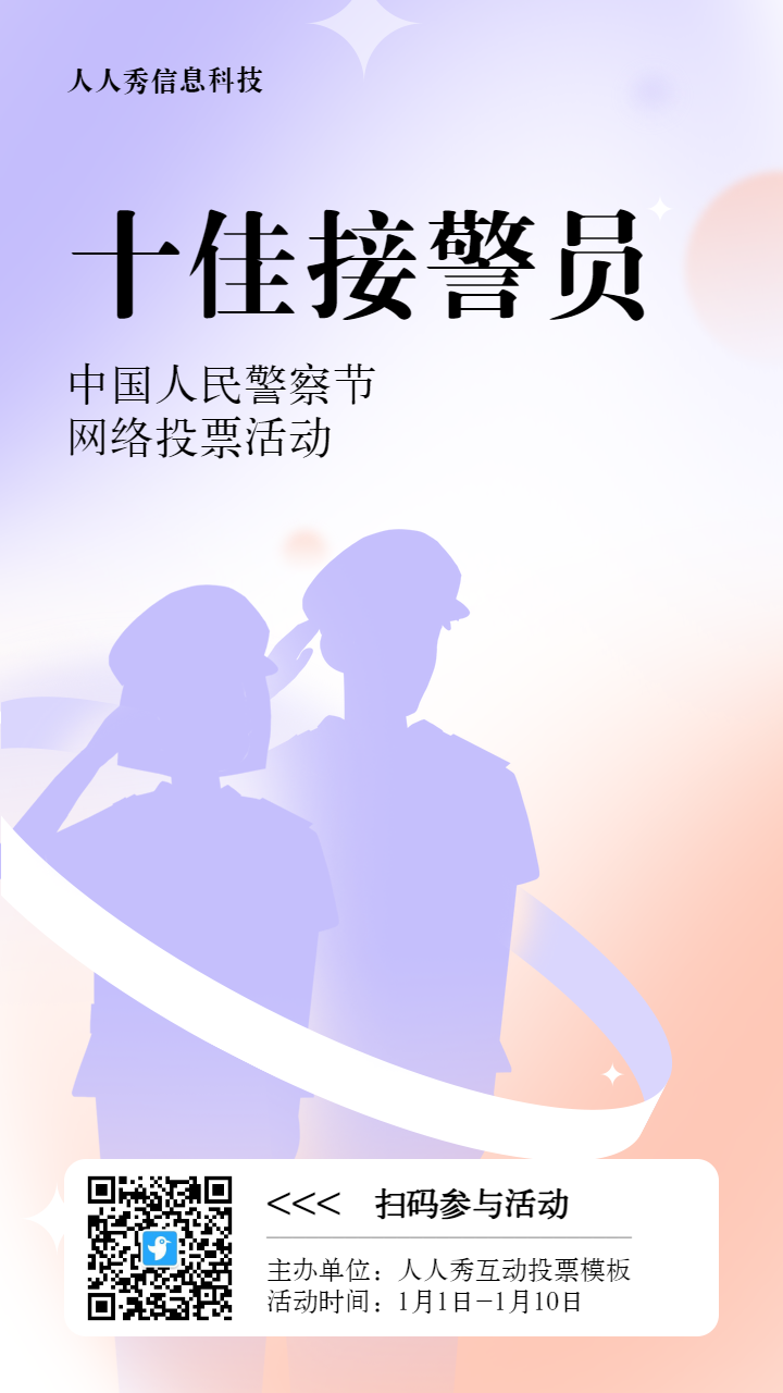 首页 / 模板商店 / 紫色渐变插画风格政府组织中国人民警察节投票活动banner