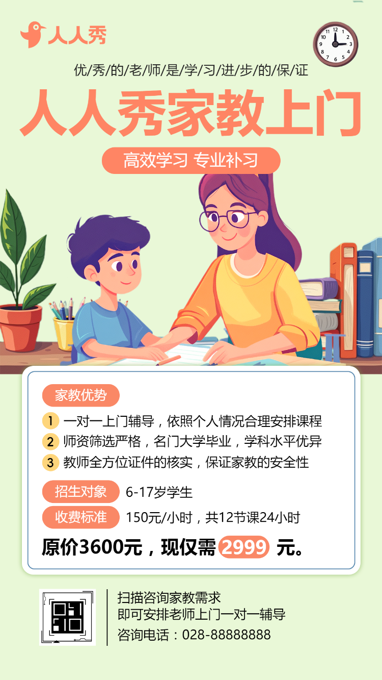首页 / 模板商店 / 家教一对一上门辅导宣传教育教学成果