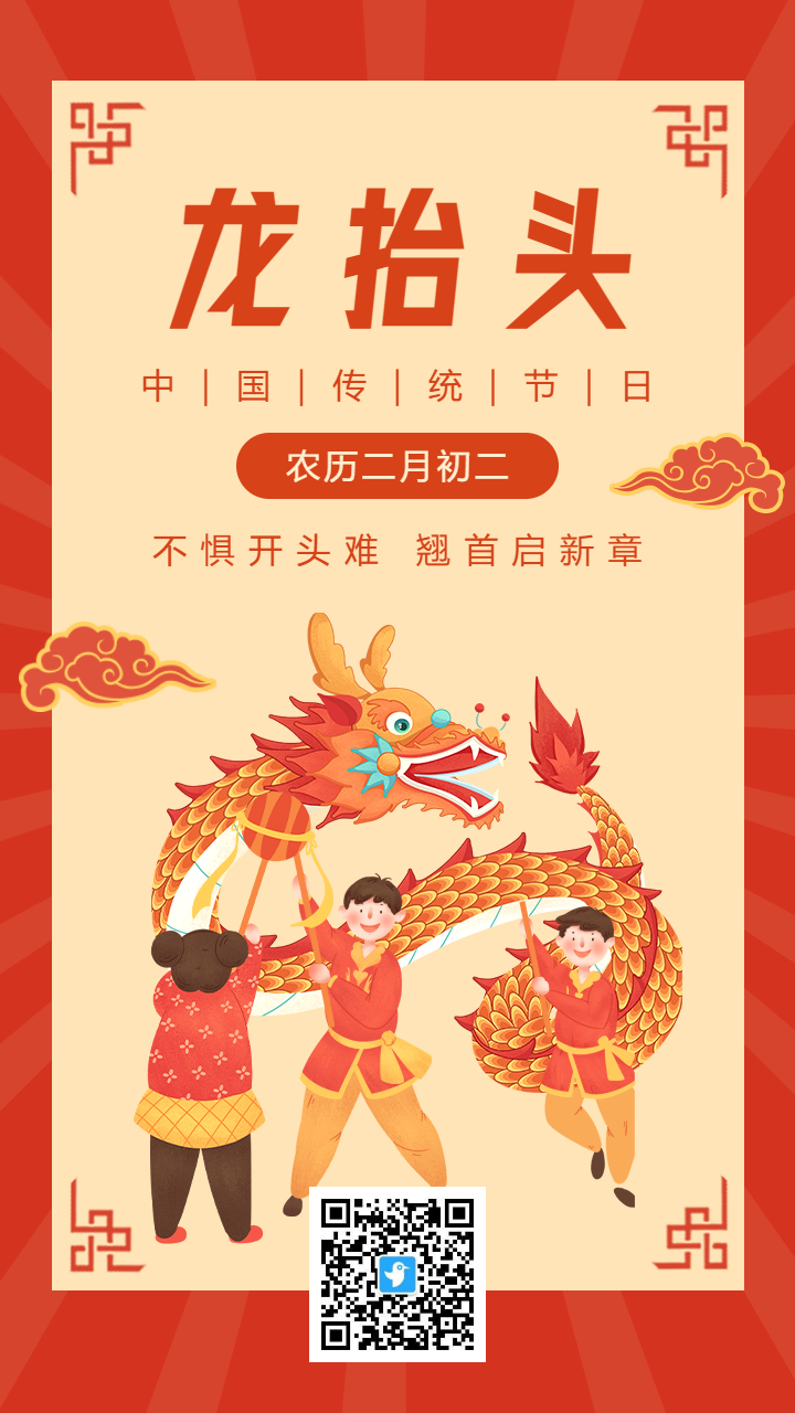 首页 / 模板商店 / 橘红色插画卡通二月二龙抬头宣传海报
