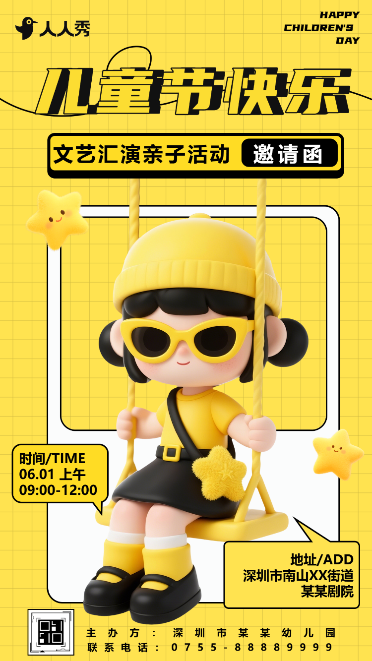 首页 / 模板商店 / 3D卡通61儿童节文艺汇演邀请函