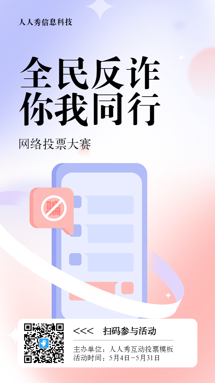 首页 / 模板商店 / 蓝色扁平渐变风格政府组织全民反电信网络诈骗宣传月投票活动海报