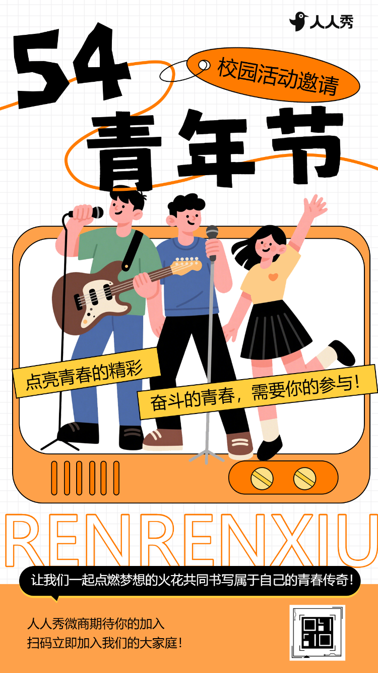 首页 / 模板商店 / 扁平手绘五四青年节校园活动邀请函