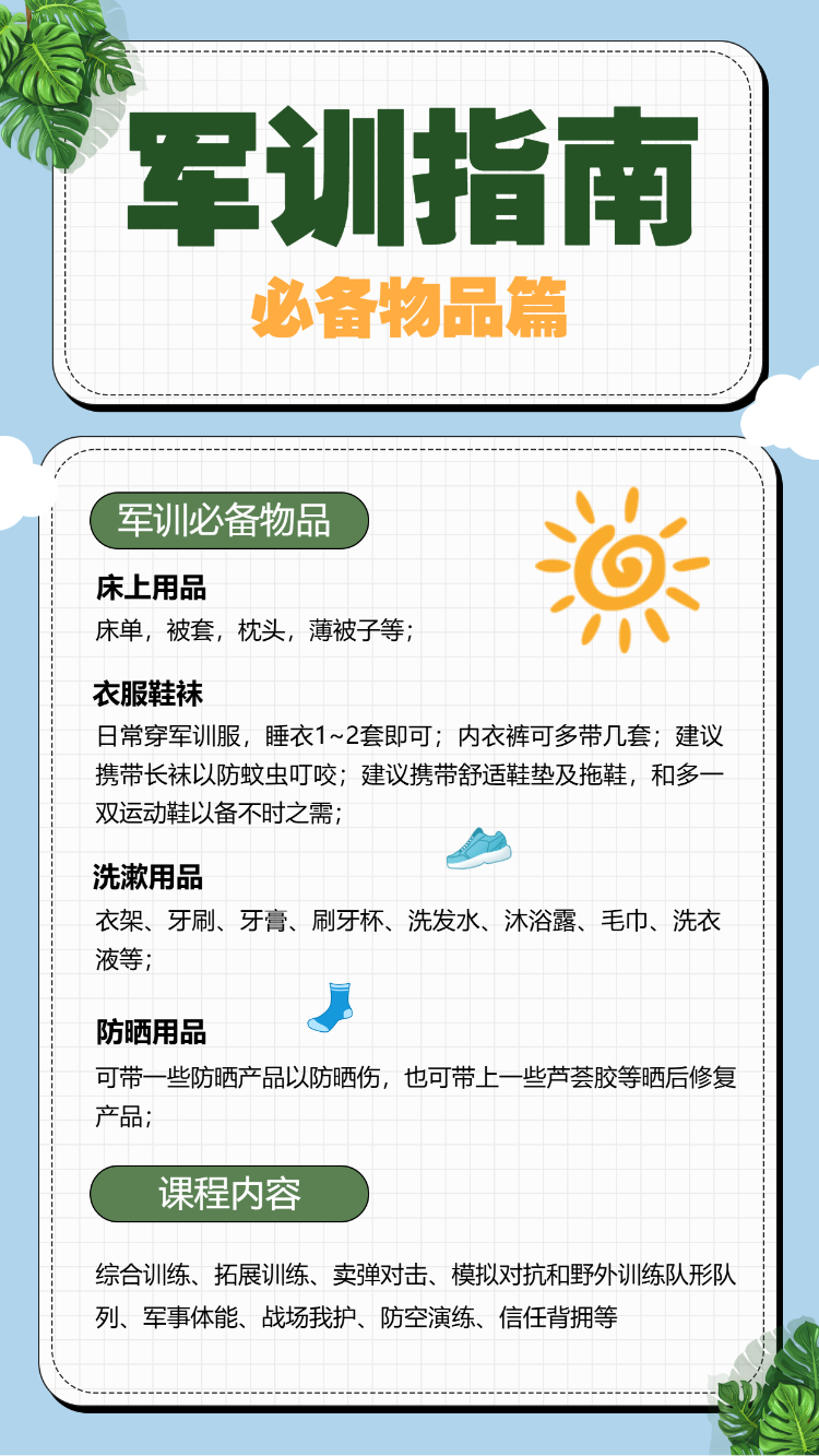 新生入学军训必备小贴士