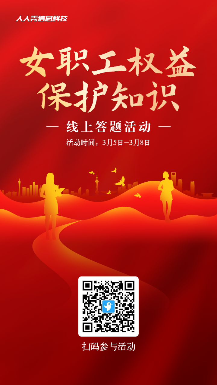 红色渐变金党建风格政府机关妇女节女职工权益保护知识答题活动海报