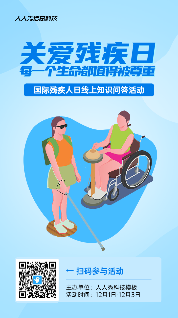 首页 / 模板商店 / 蓝色扁平风格政府组织国际残疾人日知识答题活动banner