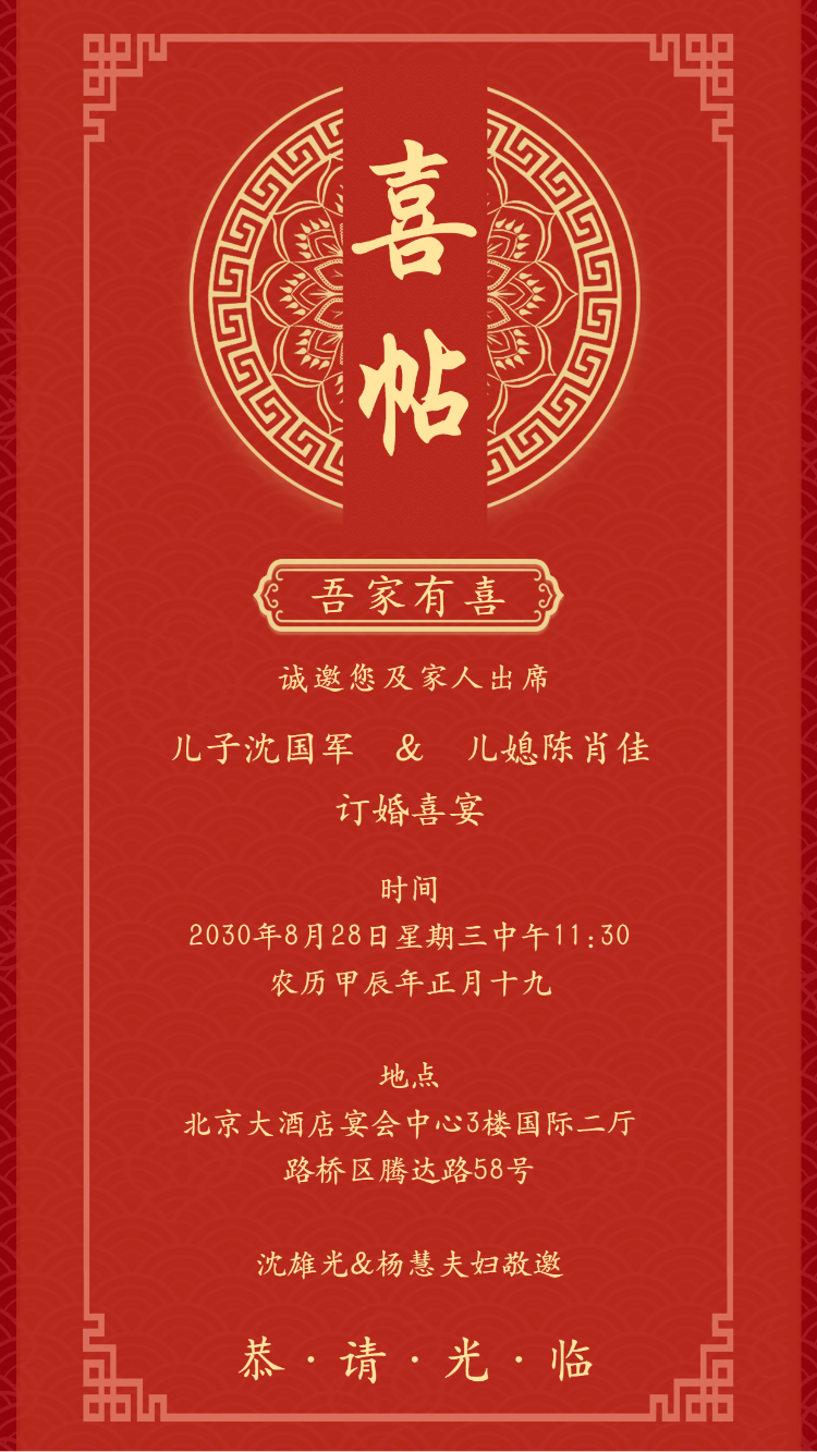 父母邀请函婚礼结婚请柬请贴父母邀请方案
