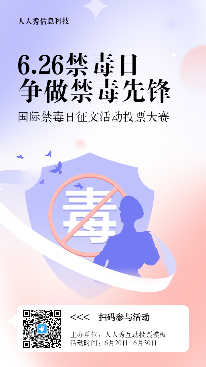首页 / 模板商店 / 蓝色扁平渐变风格政府组织国际禁毒日投票活动banner