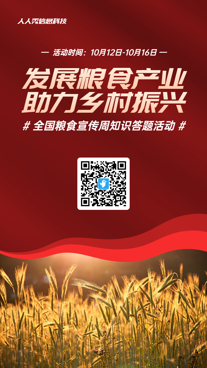 首页 / 模板商店 / 红色写实唯美风格政府组织全国粮食安全宣传周知识答题活动banner
