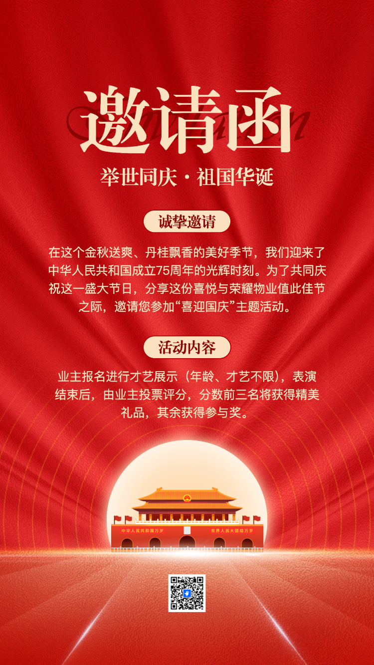 首页 / 模板商店 / 国庆节红色国风晚会客户答谢会邀请函