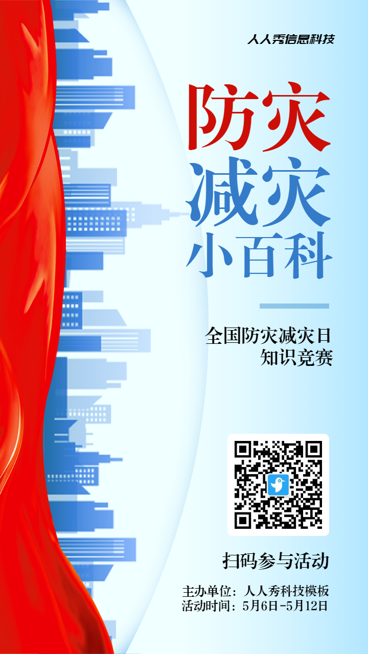 首页 / 模板商店 / 蓝色扁平渐变风格政府机关全国防灾减灾日知识答题活动banner