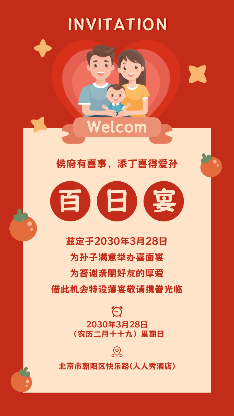 首页 / 模板商店 / 可爱宝宝百日宴邀请函满月宴生日宴满月酒邀请函