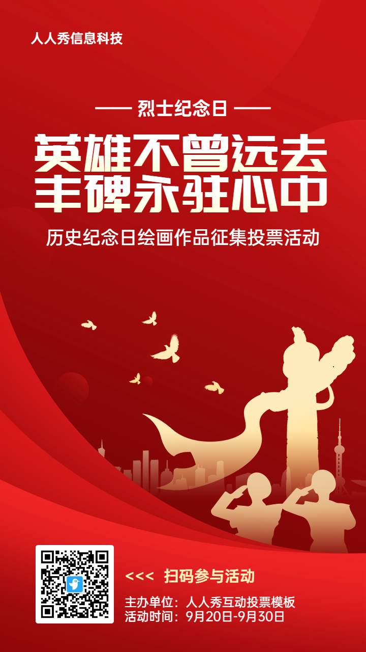 首页 / 模板商店 / 红色扁平渐变风格政府组织烈士纪念日投票活动banner