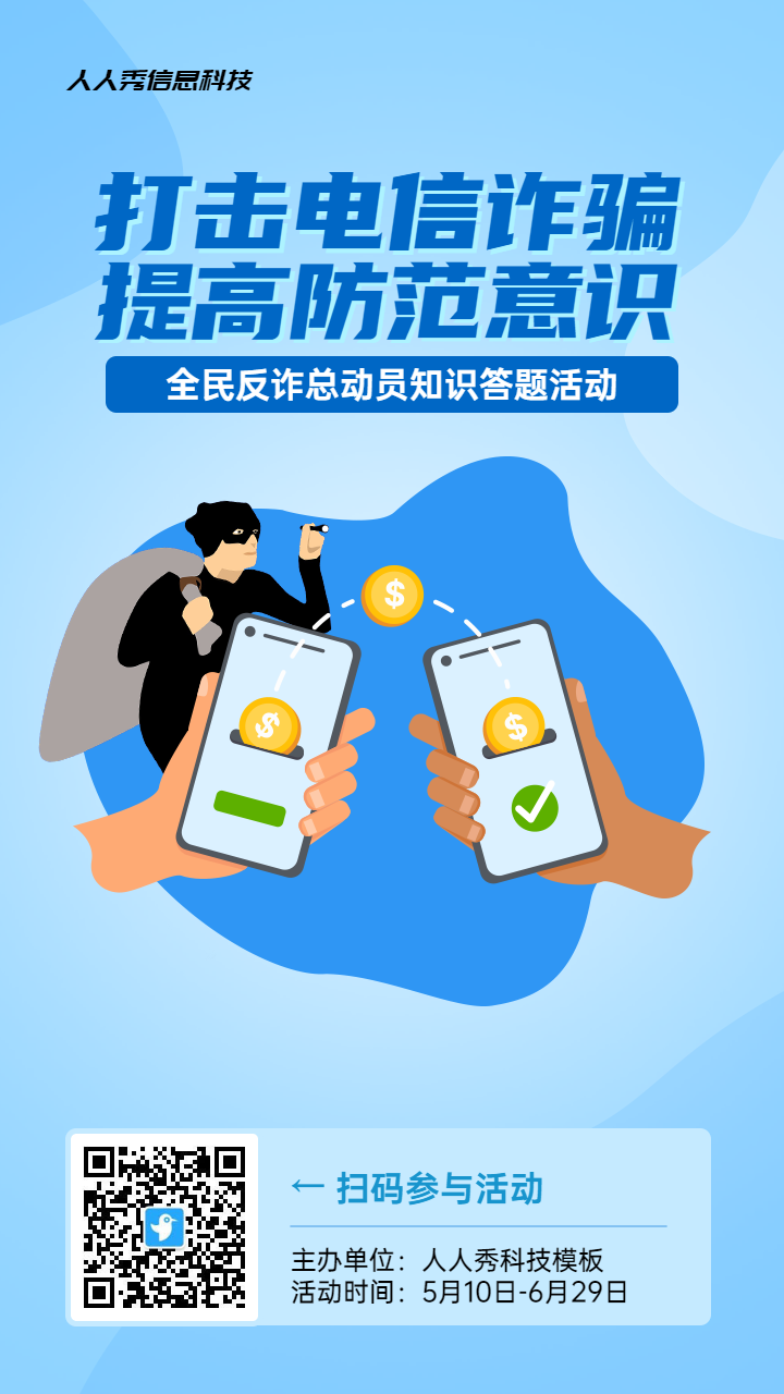 首页 / 模板商店 / 蓝色扁平风格政府组织全民反电信网络诈骗宣传月知识答题活动banner