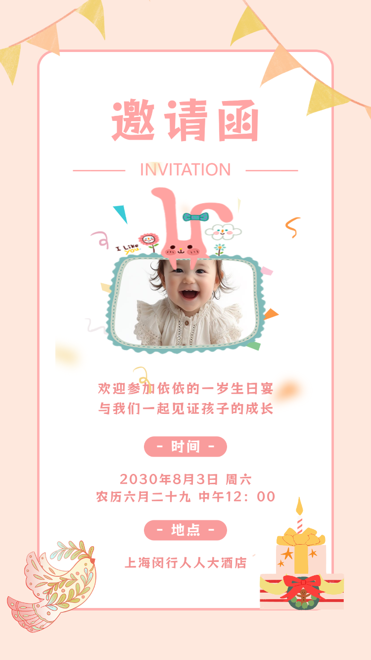 首页 / 模板商店 / 生日快乐周岁生日宴活动邀请函