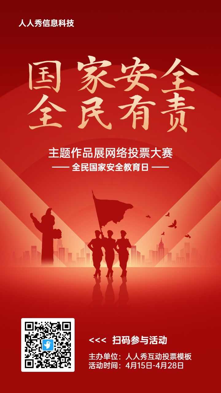 首页 / 模板商店 / 红色扁平渐变党建风格政府组织全民国家安全教育日投票活动海报