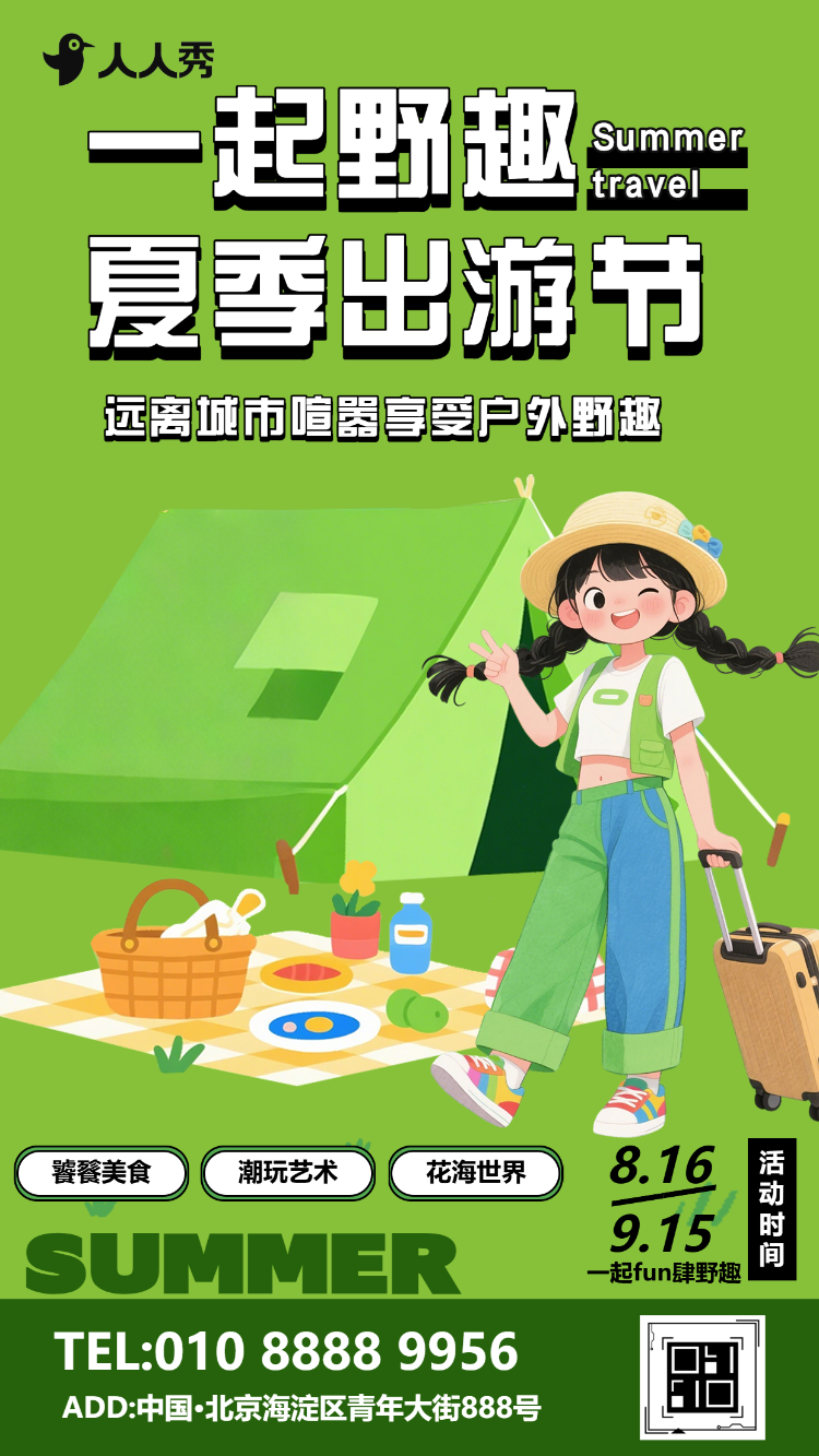首页 / 模板商店 / 一起野趣卡通风夏日亲子游假期露营宣传出游旅行