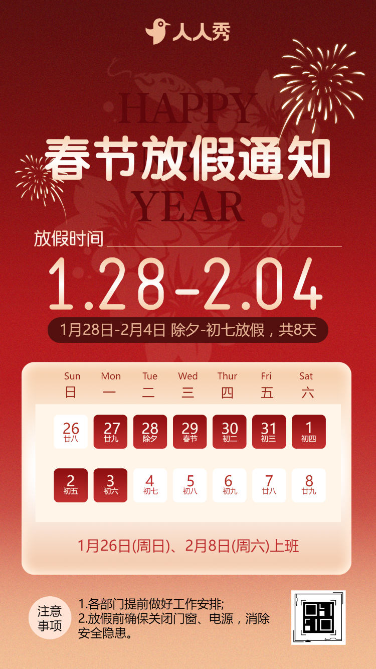首页 / 模板商店 / 高级简约喜庆红金蛇年春节祝福贺卡放假通知宣传