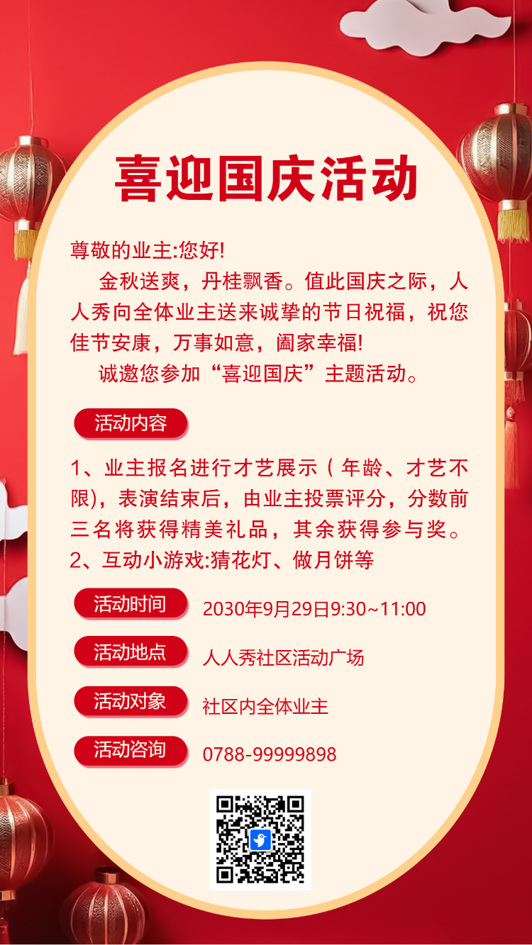 首页 / 模板商店 / 国庆节红色晚会物业感谢邀请函