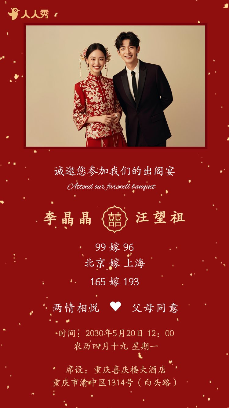 婚礼请柬出阁喜宴嫁女请帖出阁宴邀请函