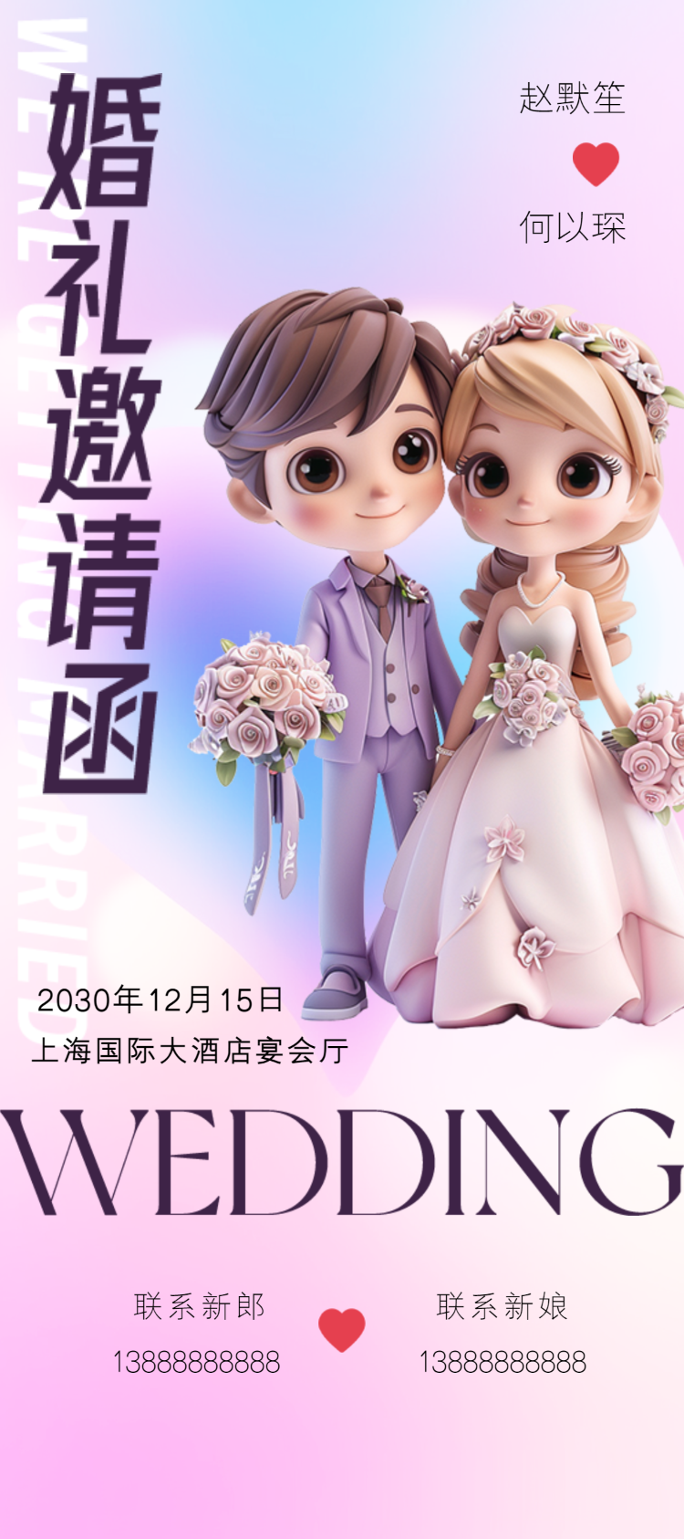 首页 / 模板商店 / 卡通3D可爱婚礼邀请函模板海报